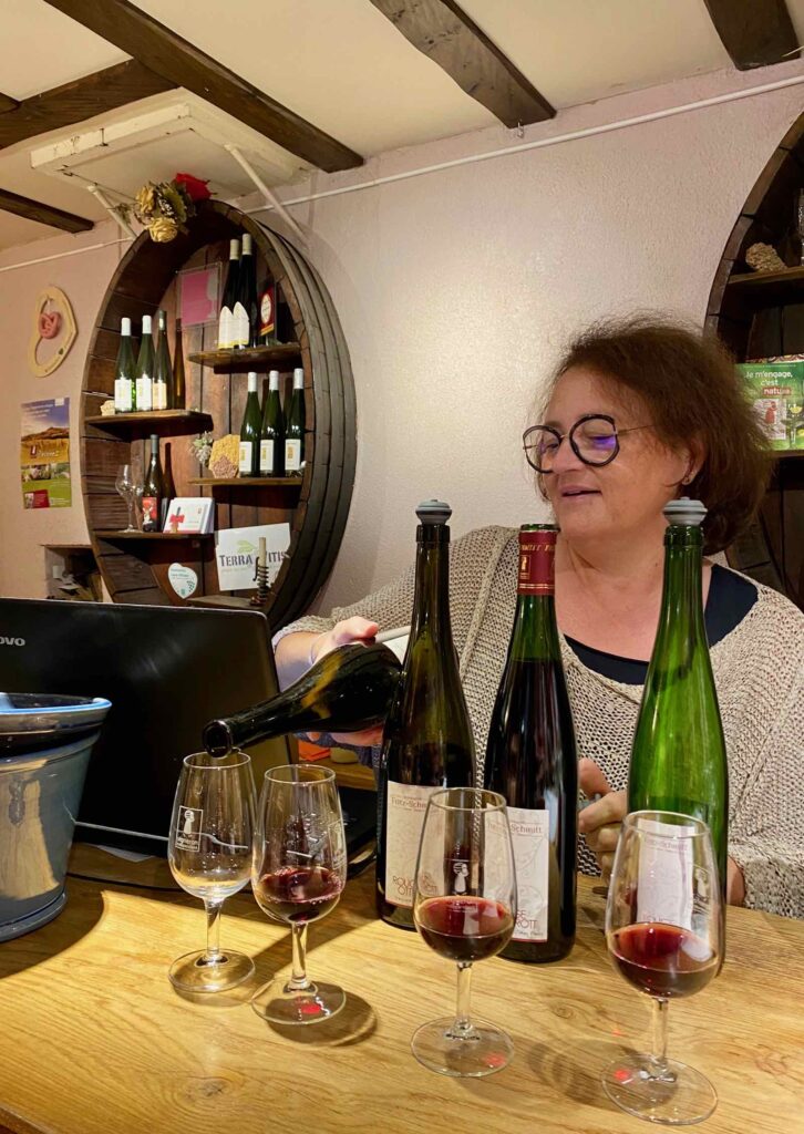 Pour la petite histoire, Catherine, la patronne du domaine Fritz-Schmitt, est la sœur de Patrick, le propriétaire du resto À L’Ami Fritz. Mais c’est surtout une vigneronne indépendante qui produit, en famille, le fameux Rouge d’Ottrott.