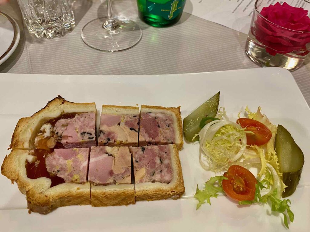 Sur la route d’Ottrott, Christelle et Dorothée, mes guides du jour, m’ont parlé de sa choucroute, portée au firmament par les internautes de Tripadvisor. C’est donc sur ce plat aux 7 viandes (l’une ou l’autre étaient restées dans le plat, au moment où j’ai fait la photo 😡) que j’ai porté mon dévolu. Tant pis pour ma balance et tant mieux pour la super quenelle de foie et le boudin truffé !