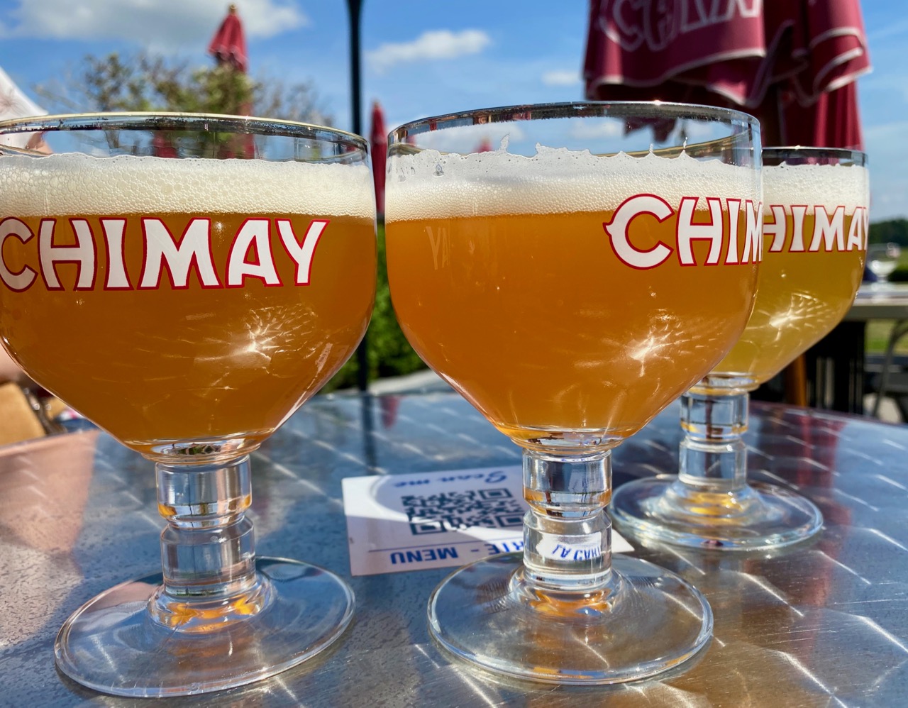 Installées à la terrasse, nous avons savouré une bonne blonde avec mes copines du jour. Accompagnée de croquettes au fromage trappiste de Chimay évidemment…