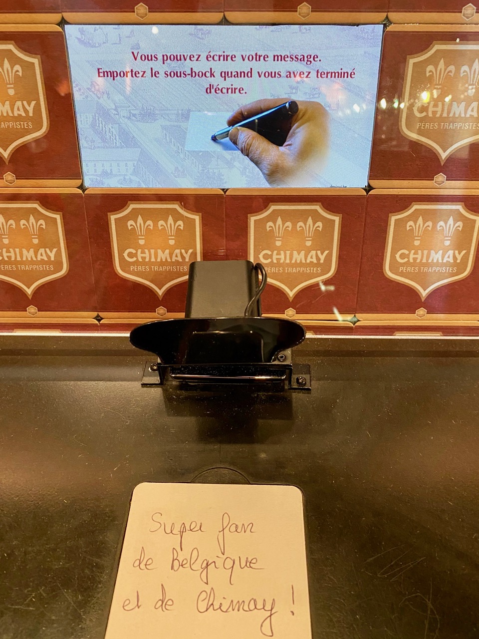 Sur un sous-bock, vous pourrez écrire un petit message, histoire de compléter la déjà vaste collection laissée par les visiteurs venus de tous horizons.