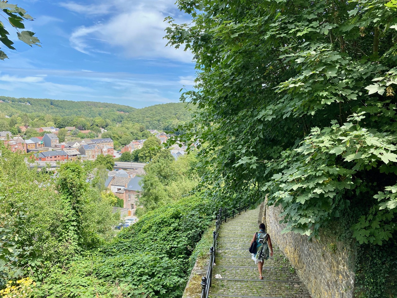 Pas grandement le temps d’arpenter le centre car il me reste un autre petit bijou à découvrir : les jardins suspendus de Thuin, qui se déclinent en terrasses sur l’éperon rocheux de la ville haute.