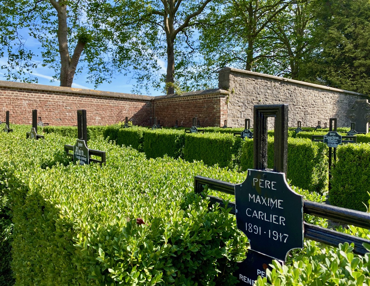 Mais le plus touchant reste sans doute le petit cimetière, situé derrière le parc. Y sont enterrés les pères et frères trappistes, tous moines, quelques sœurs bénédictines de Chimay et quelques laïcs aussi.