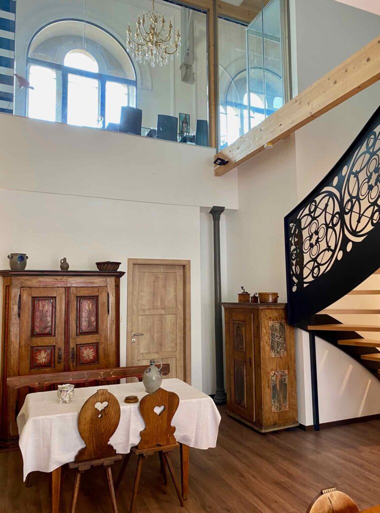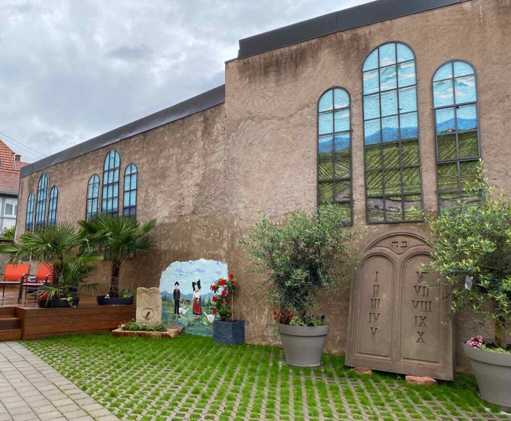 Depuis le XIIIe siècle, Rosheim abrite une importante communauté juive. D’où cette synagogue, construite en 1884 dans un style néoroman, qu’un ancien propriétaire de concessions automobiles a achetée, après sa désacralisation. Partageant les lieux avec un architecte, il occupe, depuis novembre 2020, la partie arrière de l’imposant édifice en grès jaune.