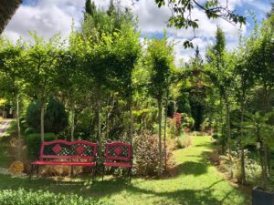 Jardins de Ly Sénarpont Somme – point central du jardin avec bancs