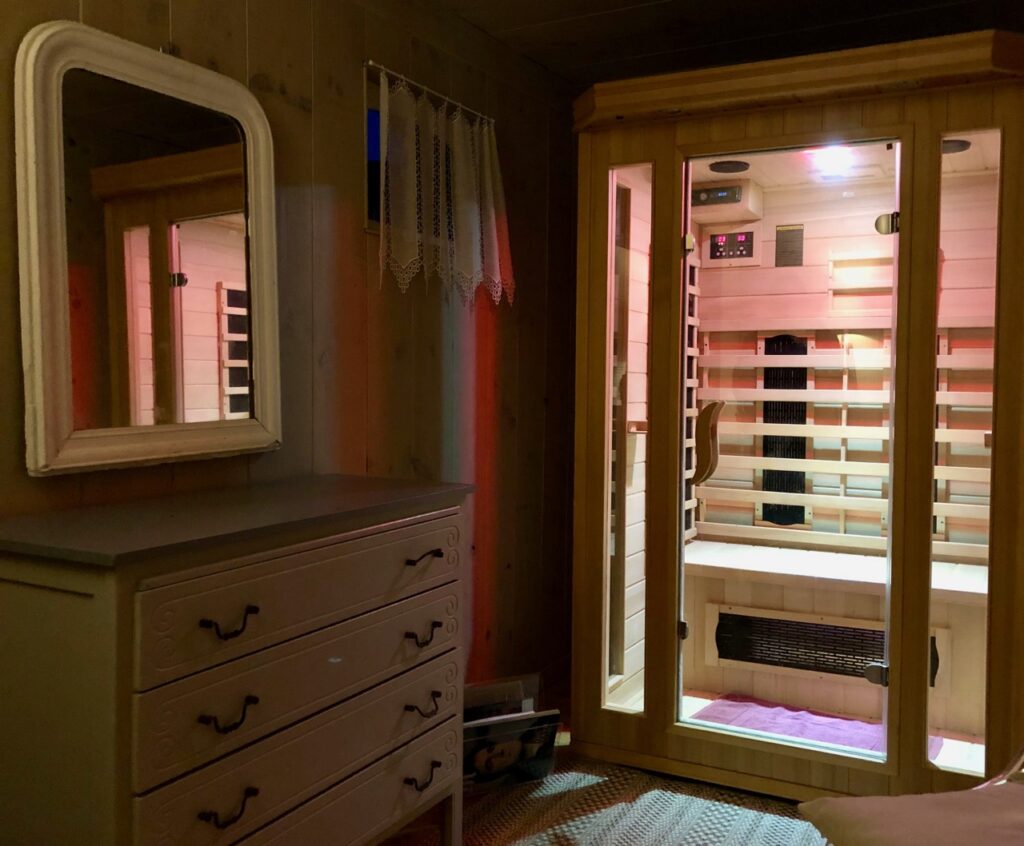 Son plus ? Un sauna, dans une cabane très cosy dans le jardin.On y transpire bien sûr mais on s’y pose aussi dans un fauteuil, histoire de se ressourcer loin du monde.
