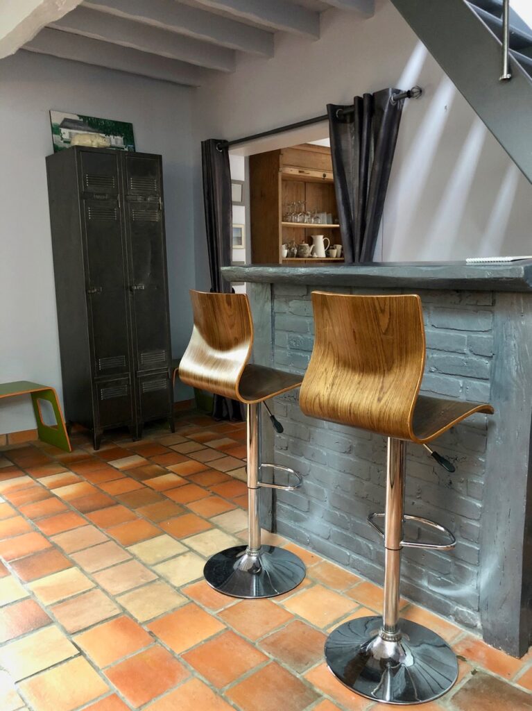 Autrefois, c’était un bâtiment entre grange et étable, l’une des dépendances de la ferme située un peu plus loin. Puis les anciens propriétaires s’en sont servi comme d’une maison d’été, y stockant meubles de jardin et y bricolant dans la partie garage. Mais ça, c’était avant. Depuis d’importants travaux effectués en 2011, l’ancienne grange est devenue L’Atelier. Un gîte au look industriel avec sa verrière et sa porte en métal, fabriquées par un artisan du coin.