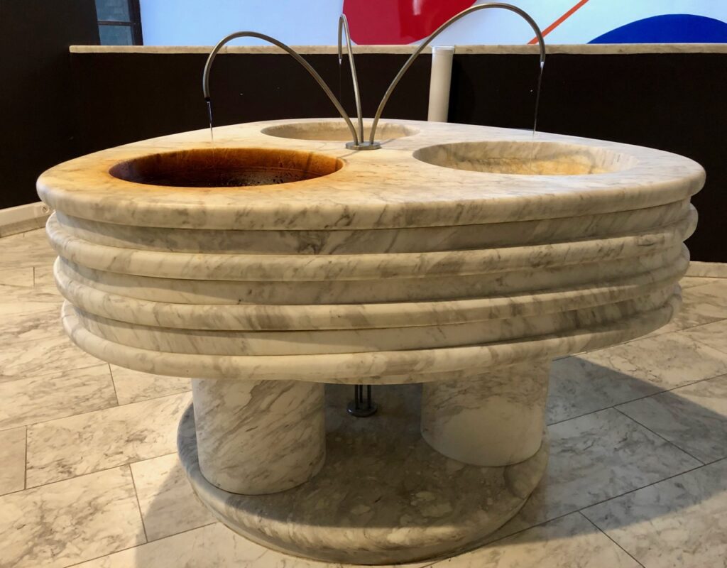 Accueillie par la directrice des Thermes de Spa, j’ai eu droit à un petit cours, vite fait bien fait, sur l’eau de Spa et ses vertus un peu magiques. Pour faire court, disons que Spa compte une soixantaine de sources au total. L’eau, qui filtre à travers les massifs rocheux, se charge en minéraux et c’est cela qui lui donne ses propriétés curatives. Ici, aux Thermes de Spa, c’est l’eau de la source Marie-Henriette (du nom de la deuxième reine des Belges, qui a vécu ici à la fin de sa vie) qu’on utilise depuis 150 ans pour prodiguer les soins. C’est elle d’ailleurs (l’eau, pas la reine…) qui s’écoule dans la fontaine en marbre de l’entrée du complexe.