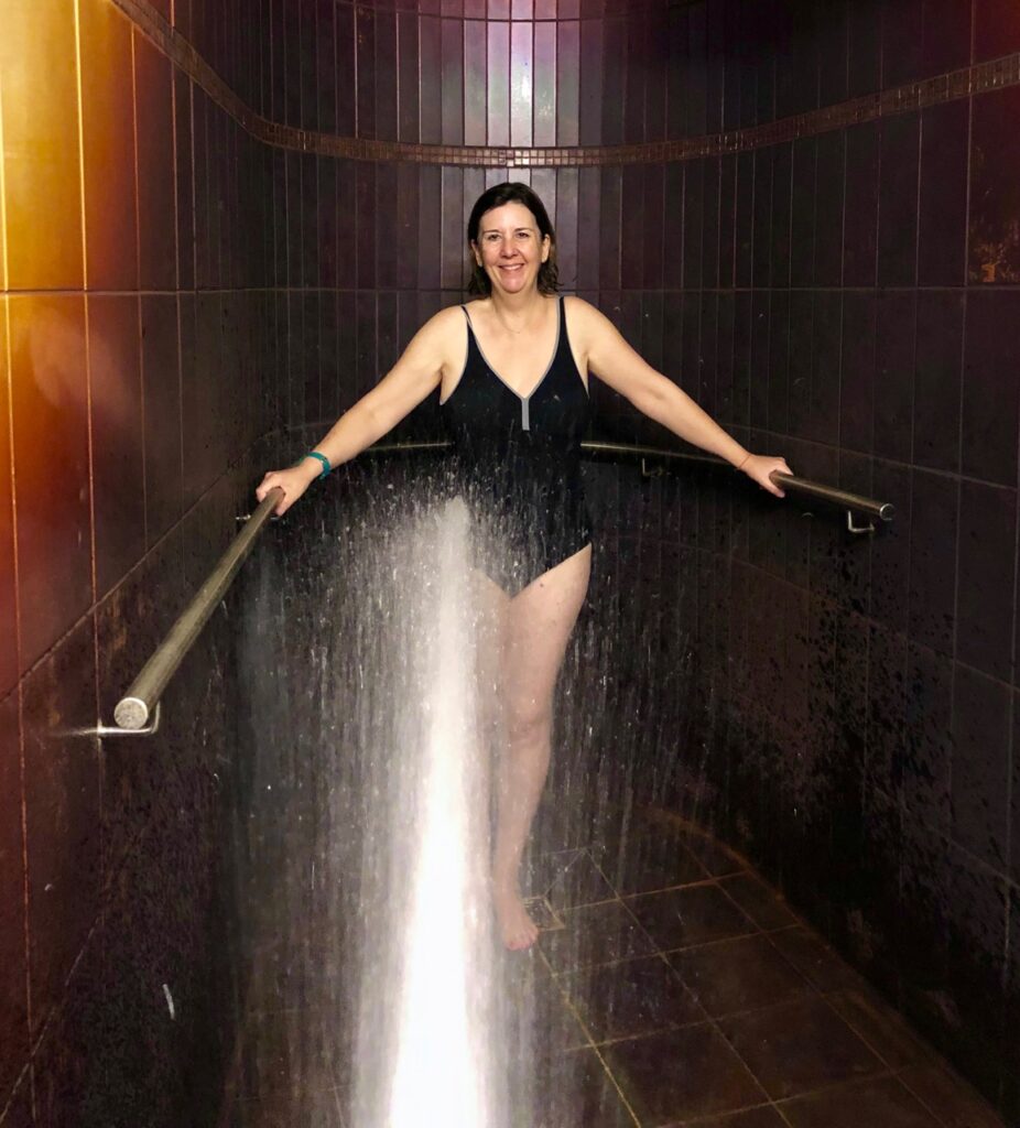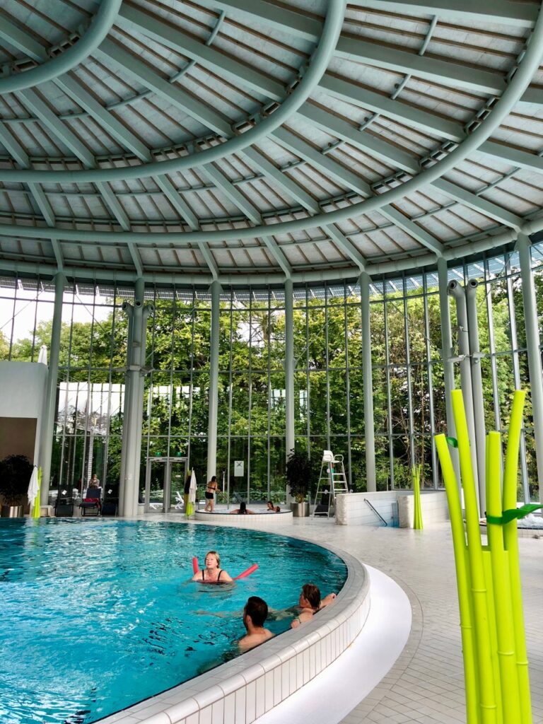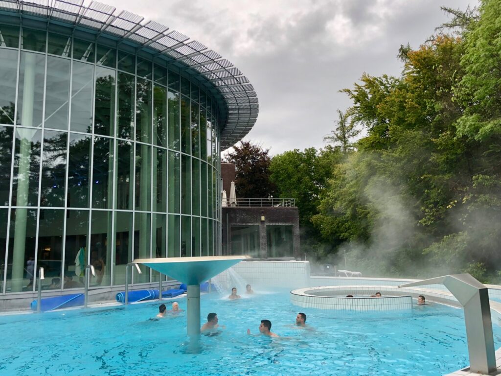 Mon compagnon étant à son tour sorti de sa cabine, repulpé, détendu et même un peu rajeuni m’a-t-il semblé, le moment était venu d’explorer les Thermes de Spa. Et trois heures, c’était assez pour tout tester. L’espace textile (c’est-à-dire avec maillot), avec sa grande salle de repos, son hammam et son sauna avec vue panoramique sur la ville. L’espace naturiste, avec son hammam, son sauna, son jacuzzi et ses bains chaud et froid.