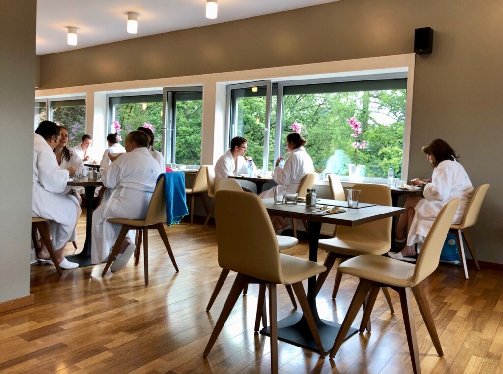 Je dois dire que déjeuner en peignoir est un truc que j’adore ! C’est régressif, délicieux, plus encore dans l’environnement très nature des Thermes de Spa.
