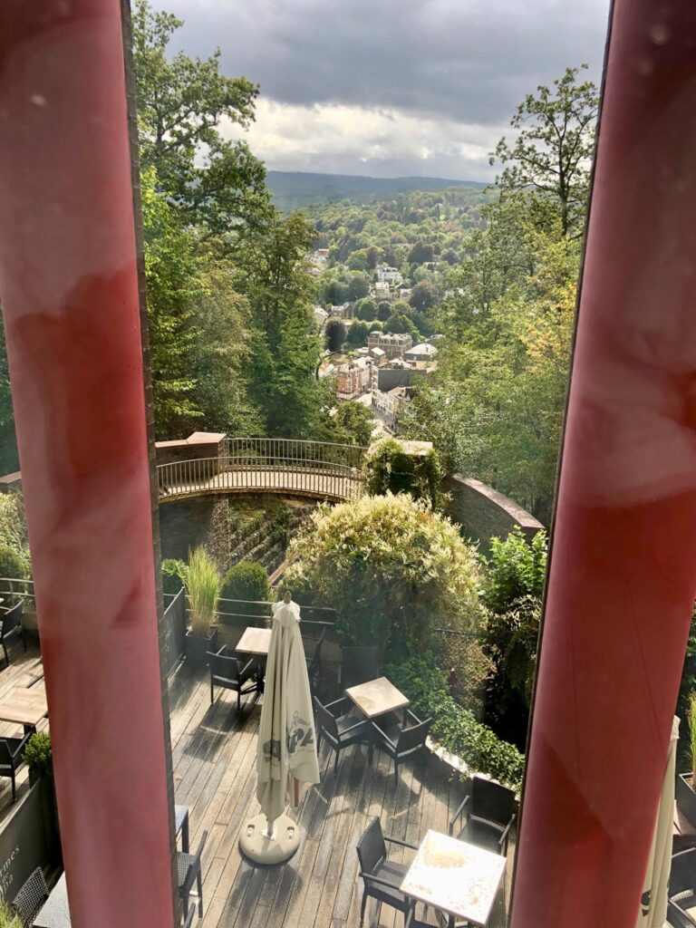 Tout a commencé par un petit voyage en funiculaire jusque sur la colline Balmoral, là où se trouvent les nouveaux Thermes de Spa, ouverts en 2004. Si vous venez de l’extérieur, c’est payant. Si vous logez au Radison Blu Palace Hotel (comme nous, je vous en reparlerai dans un autre post), c’est gratuit… et c’est faisable en peignoir, les deux établissements étant reliés entre eux.