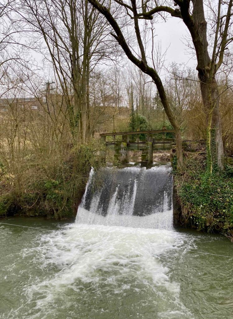 Mais le fil conducteur de cette balade, c’est bien sûr l’Aunelle, la petite rivière qui traverse Sebourg du sud au nord. Rue de la Cascade (original, non ?), voici la cascade de l’Aunelle, qui fait son petit effet sonore et visuel ! L’eau y clapote joyeusement et, l’espace d’un instant, je me serais (presque) crue en montagne.