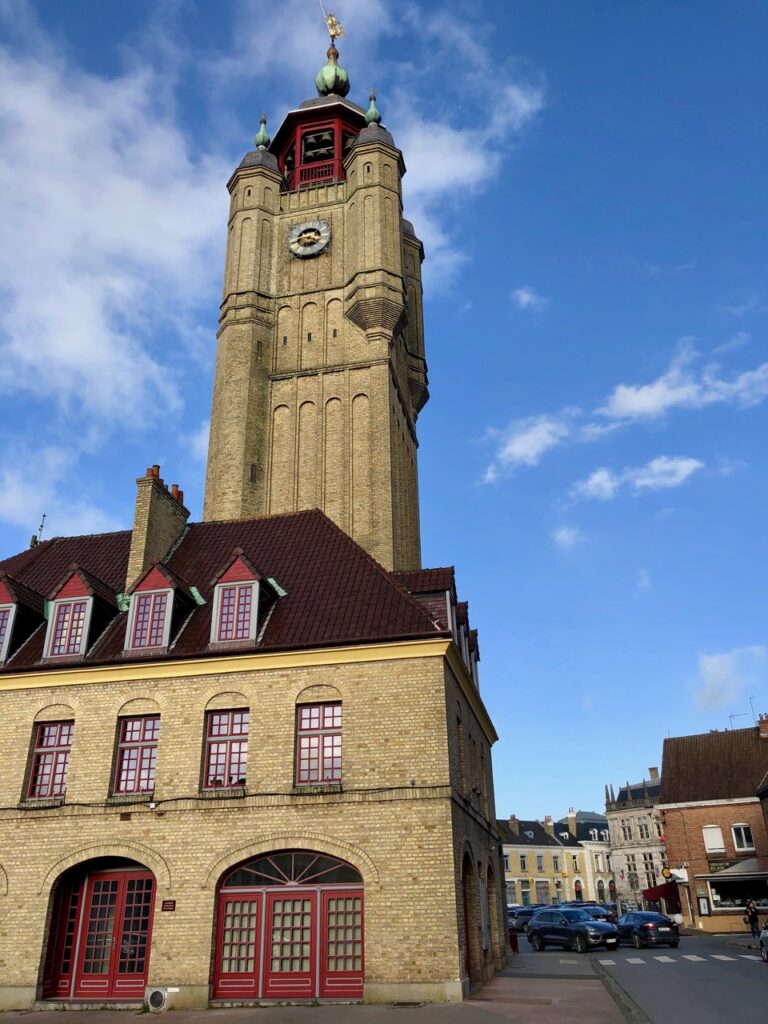 Commencez donc votre balade par la place Henri Billiaert, au milieu de laquelle se dresse le beffroi, visible comme le nez au milieu de la figure ! Reconstruit entre 1958 et 1961, suite au dynamitage allemand de la Deuxième Guerre, il est en quelque sorte le personnage principal de Bienvenue chez les Ch’tis. Je ne vais pas vous raconter le film, vous devez vous souvenir de cette scène culte, quand Dany Boon déroule un drap du sommet…