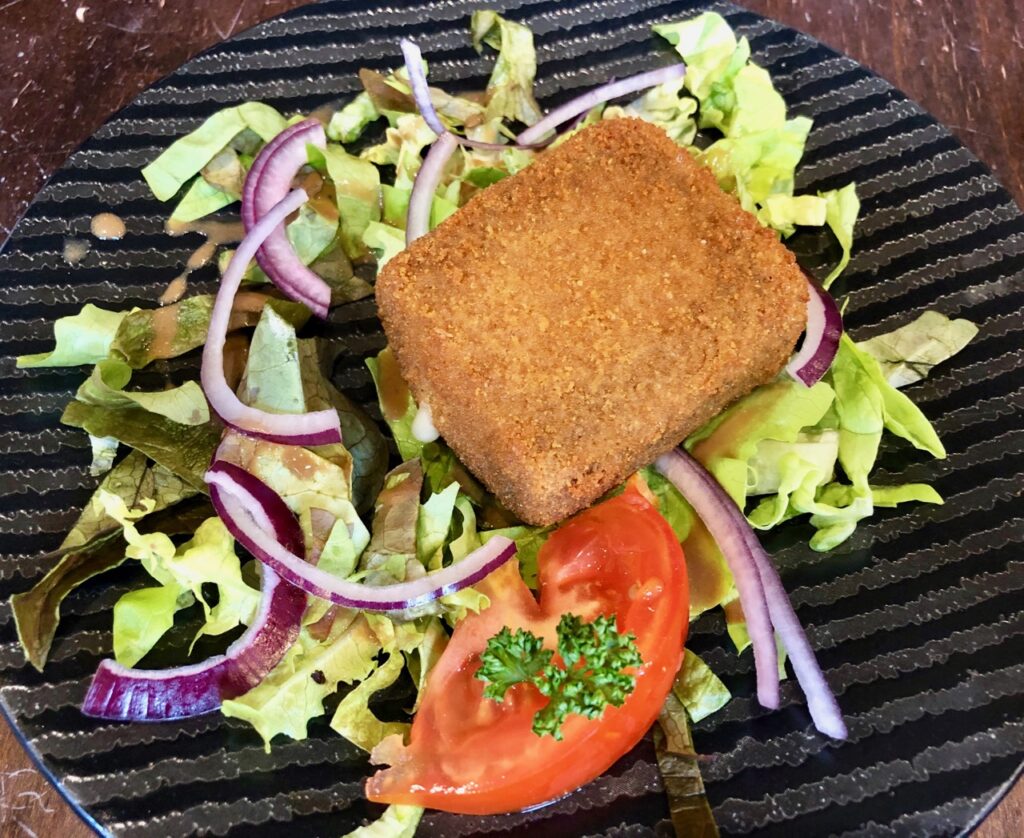 Mon amoureux a préféré une autre entrée très light, le maroilles pané sur salade… Tout mon style aussi mais dans la vie il faut savoir choisir !