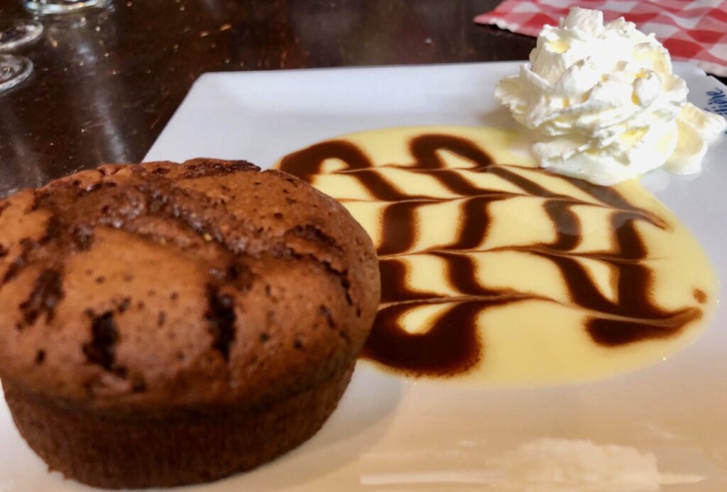 Pour finir, nous avons pris un fondant au chocolat, qui ne figurait pas au Menu du terroir mais à la carte. La patronne nous a dispensés du petit supplément, geste commercial sympathique, bien en phase avec le service, souriant et vraiment agréable. Comme un goût de revenez-y.