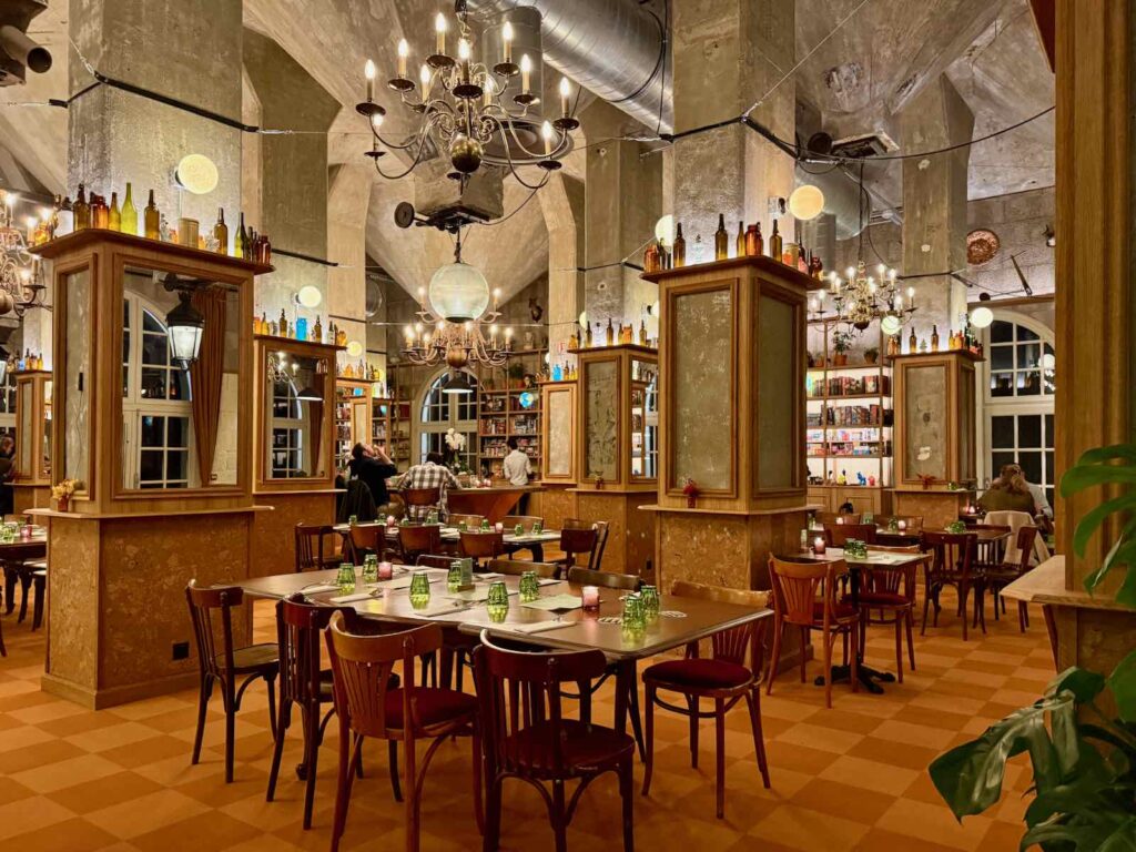 Pour la petite histoire, c’est un ancien décorateur du Cirque du Soleil qui a relooké le lieu, chinant ça et là pour le meubler et l’accessoiriser… Ainsi, les lustres du centre de la salle viennent du Parlement des Pays-Bas, rien que cela !