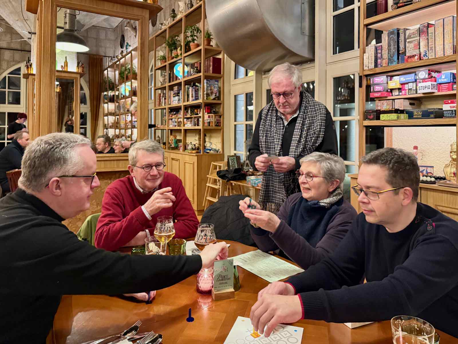 Évidemment, il n’est pas question que chacun des clients aille fouiller dans les bibliothèques à jeux pour trouver son bonheur. Proposer le bon jeu à la bonne table, c’est le job des gentils animateurs, rebaptisés ici « sommeliers du jeu ». Une petite conversation avec les joueurs d’une table leur permet de savoir quelle est l’humeur du moment du groupe. Afin de lui apporter le jeu adéquat et de lui en expliquer les règles.