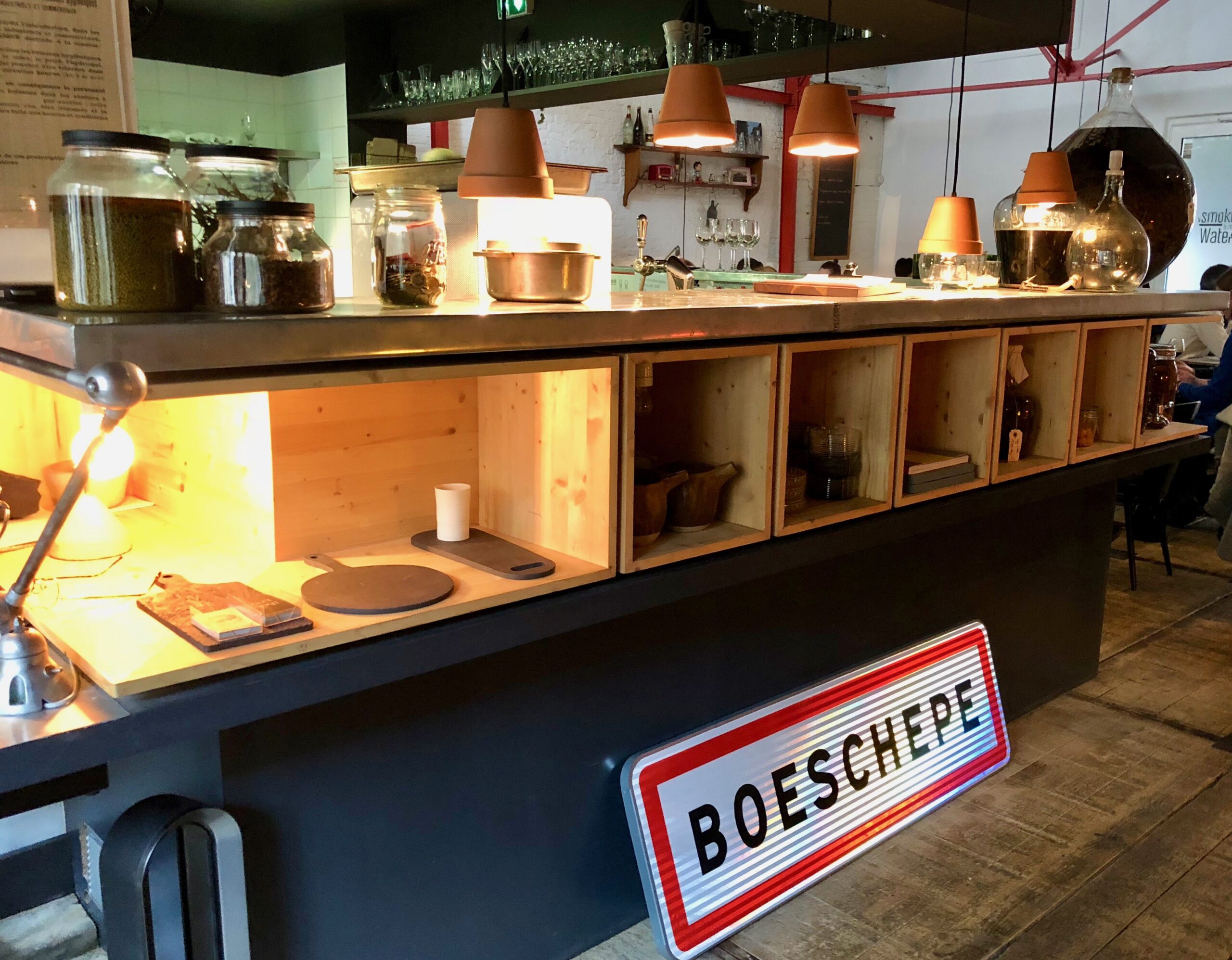 En plus d’être une cantine, c’est une cantine flamande. C’est à dire authentique, « roots », brute. Une salle de resto comme un hangar aménagé, avec son mur en brique, ses poutrelles métalliques, ses tables en bois brut (sans nappe, sans sets) et son sol en larges planches.