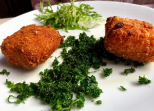 A l’heure du déjeuner, De Koetse sert un excellent lunch pour un tarif raisonnable de 27 €. Ce jour-là, j’ai pris des croquettes au parmesan en entrée et des solettes/salade/frites en plat.