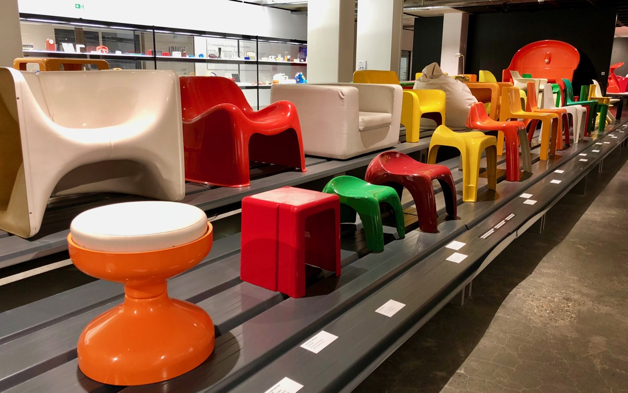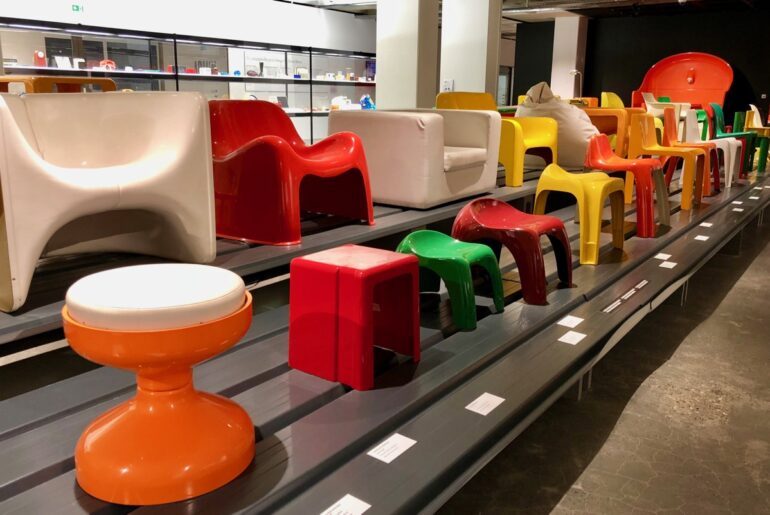 Ce Plasticarium est, dans un premier temps, présenté au centre de Bruxelles. Puis à l’occasion d’une exposition temporaire à l’Atomium, baptisée « Orange Dreams ». J’avais vu cette expo et j’avais trouvé assez génial de mettre ainsi à l’honneur le plastique « ce moment important du design ». Plein d’autres que moi ont également trouvé cela génial et les excellents retours du public ont convaincu les décideurs de l’Atomium d’acheter purement et simplement la collection.