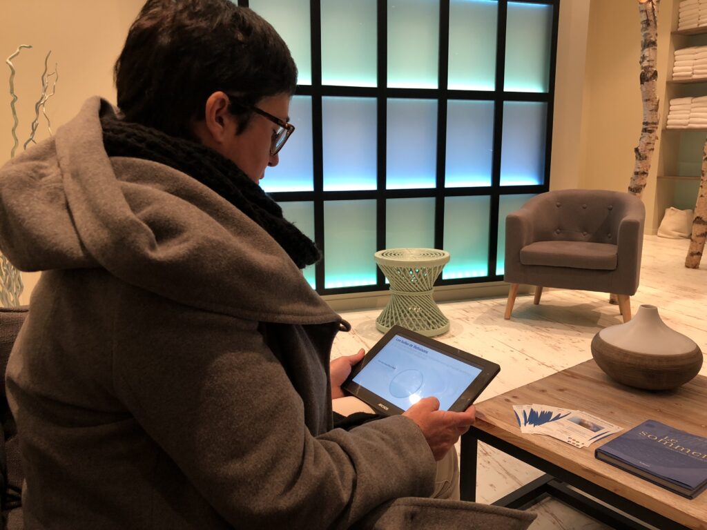 Les premières informations nous sont données sur une tablette tactile. On apprend ainsi que les 800 litres de la bulle de flottaison contiennent plus de 500 kg de sel de magnésium. Soit cinq fois plus que la mer Morte ! Ah oui, quand même…