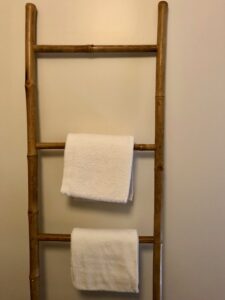 Avant d’entrer dans l’eau à 34,9°, il faudra prendre une douche et se laver les cheveux. Ce qui pour moi, prend toujours un peu de temps… Tout est fourni par Les Bulles à flotter, y compris le démêlant (ouf !) et le sèche-cheveux mais ça c’est pour plus tard…