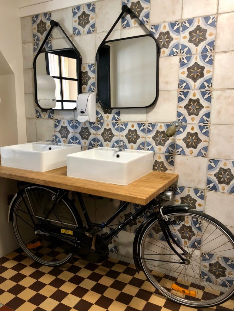 Sûr aussi que Raoul le farceur aurait aimé les lavabos de l’établissement, prêts à prendre le large sur un biclou…