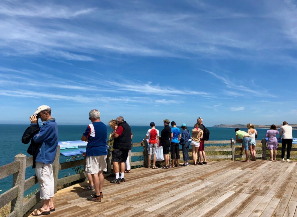 C’est le plus grand des quatre belvédères, qui offre un spectacle vraiment époustouflant ! Le Gris-Nez est le point du littoral français le plus proche de l’Angleterre, à environ 30,3 km. Par temps clair, comme le jour de notre passage, on peut donc apercevoir les côtes anglaises. Mais on observe surtout l’intense trafic dans le détroit du pas de Calais, plus de 500 bateaux par jour ! Un tel trafic à proximité de ce joyau naturel, est-ce bien raisonnable ?