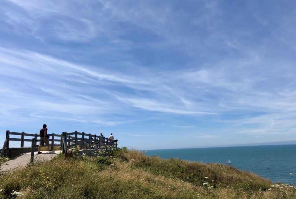 On continue le chemin et on arrive au belvédère du vent, le bien nommé ! Même par beau temps, impossible de rester coiffé(e) correctement ici ! On se paye à tous les coups une coiffure à la Boris Johnson et on s’empresse souvent d’enfiler son coupe-vent…