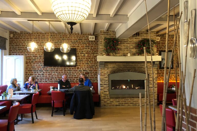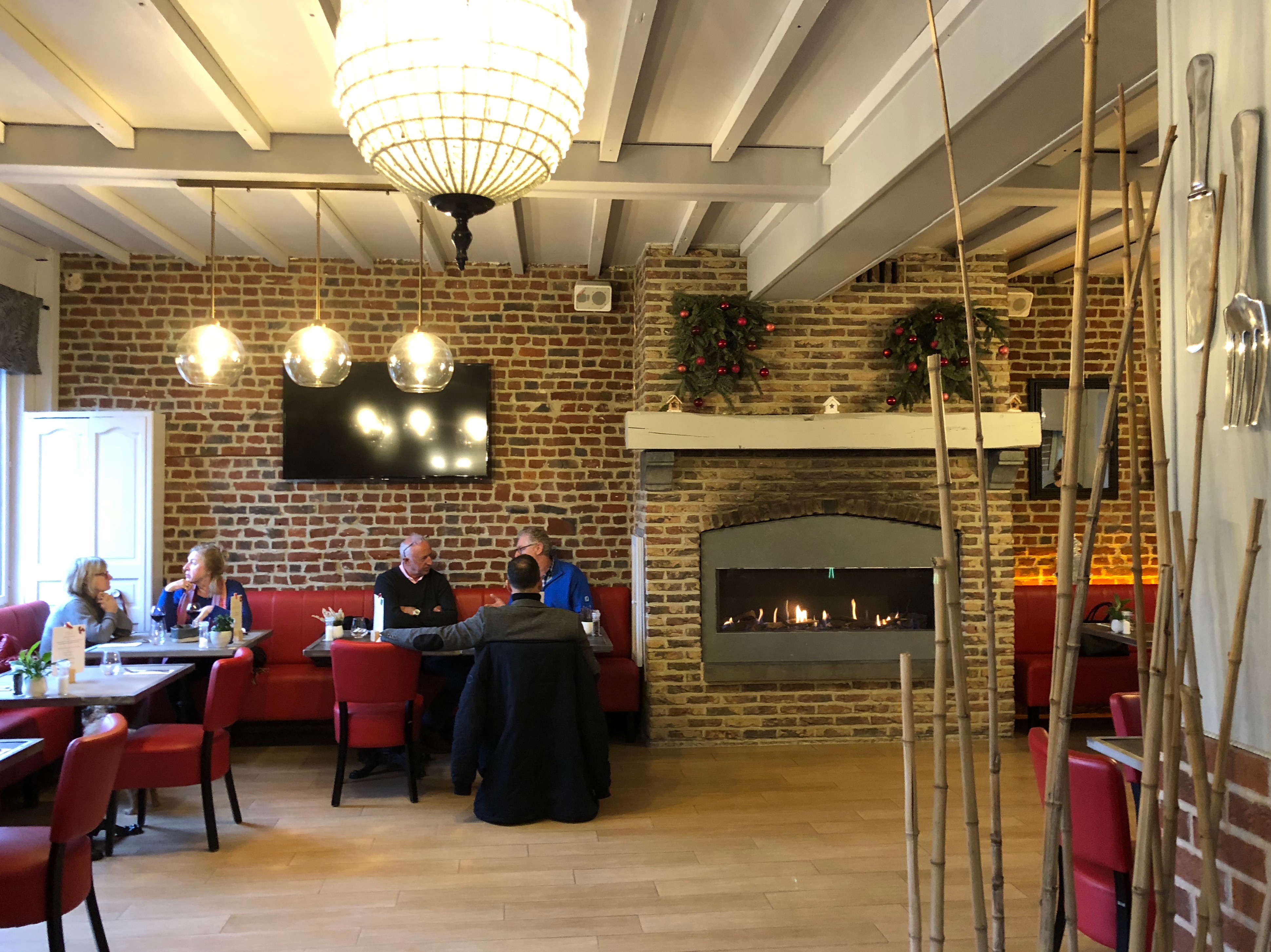 Une touche de rouge, très fruits rouges, pour le côté vitaminé. De la brique et des poutres peintes pour le côté chaleureux. Une tête de cerf et la cheminée pour un petit côté scandinave. Delphine Doise, la patronne des lieux, a mélangé les influences avec un bonheur certain.