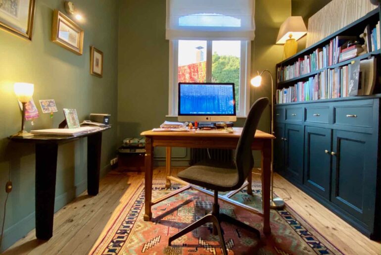 Depuis plus de vingt ans que je vis dans ma maison de la métropole lilloise, je m’efforce de la rendre plus cosy et confortable mais aussi d’accentuer son style Art déco. Ainsi, j’ai eu l’idée de remplacer les basiques panneaux en verre de la porte de cuisine par un vitrail inspiré de l’Art déco. Et qui mieux que mon amie Françoise, qui a ouvert l’atelier d’art arrageois Verronimo, pour se charger de cette réalisation ? Elle a fait un travail superbe et je suis fan de mon nouveau vitrail Art déco ! Petit retour sur ce chantier, étape par étape…