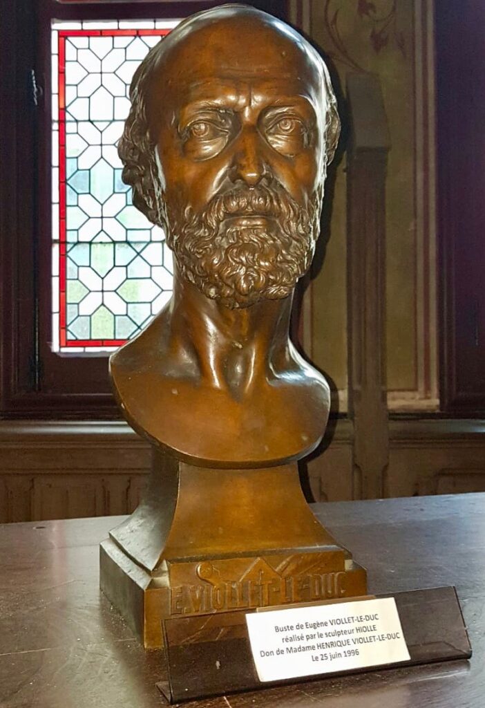 Quand il découvre Pierrefonds, l’édifice n’a rien à voir avec la photo ci-dessus. Il ne reste pas grand-chose du fier château médiéval, démantelé par Louis XIII. Mais l’empereur en tombe raide et décide de le rebâtir. Pour cela, il fait appel à Viollet-le-Duc, l’un des architectes les plus célèbres du siècle, dont on trouve le buste au château de Pierrefonds.