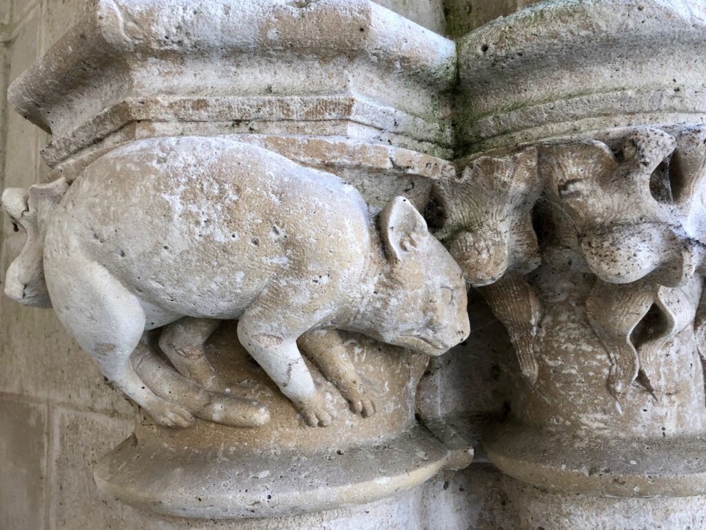 Le château de Pierrefonds n’est pas habité que par des chats. Il est également hanté par toute une série d’animaux fantastiques, qui forment un véritable bestiaire de pierre. Chacun d’entre eux est un assemblage de trois animaux différents, autant dire qu’il s’agit de drôles de bestioles !
