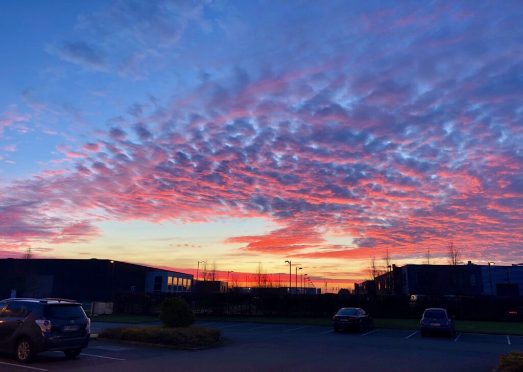 - L’immense parking. Évidemment, il faudra aller à Hallennes-lez-Haubourdin, à une dizaine de kilomètres de Lille. Mais une fois là-bas, un immense parking tend les bras aux visiteurs, dans cette zone artisanale Les Pyramides. Avec, pour nous, un grandiose coucher de soleil en prime !