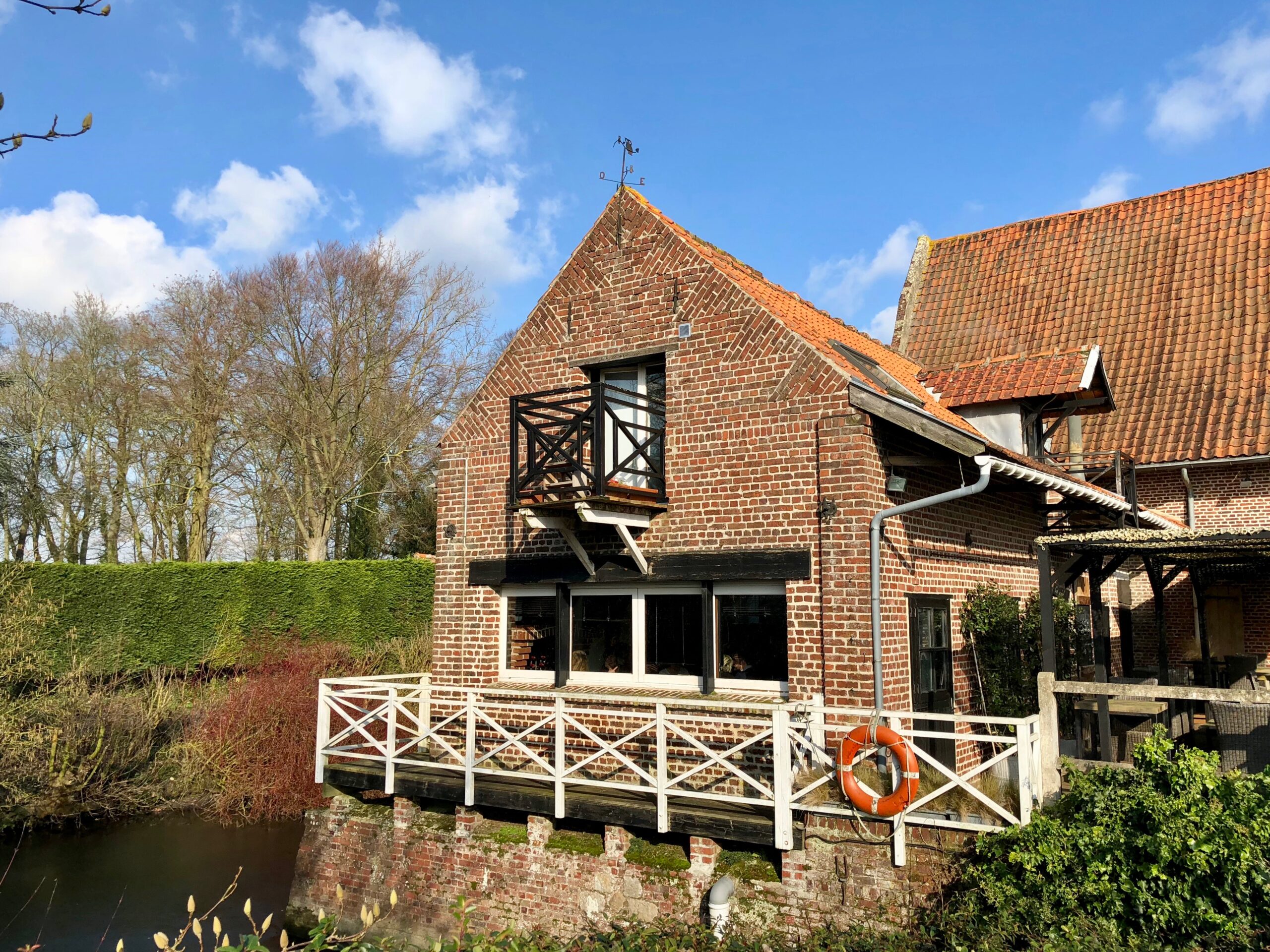 Il est vrai que le Coin de la reine est à lui seul un petit show room à la belge, mélangeant le noir, la brique, le bois brut, les poutres largement centenaires et de jolis objets. Il est installé dans une aile de l’immense et très belle ferme du Domaine d’Aigremont, avec une terrasse qui donne sur l’eau pour les beaux jours.
