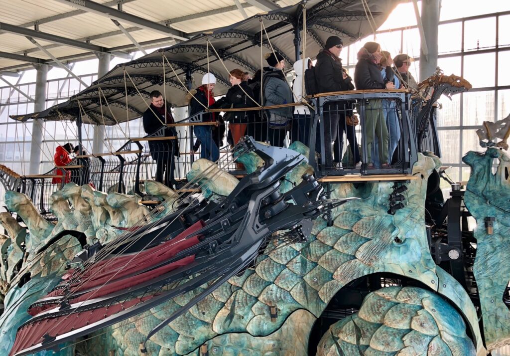 Debout à côté du machiniste, on est carrément aux premières loges pour admirer ces détails qui rendent le Dragon de Calais presque vivant. Comme ces cicatrices, traces de batailles anciennes, qui marquent son grand corps de bois et d’acier.