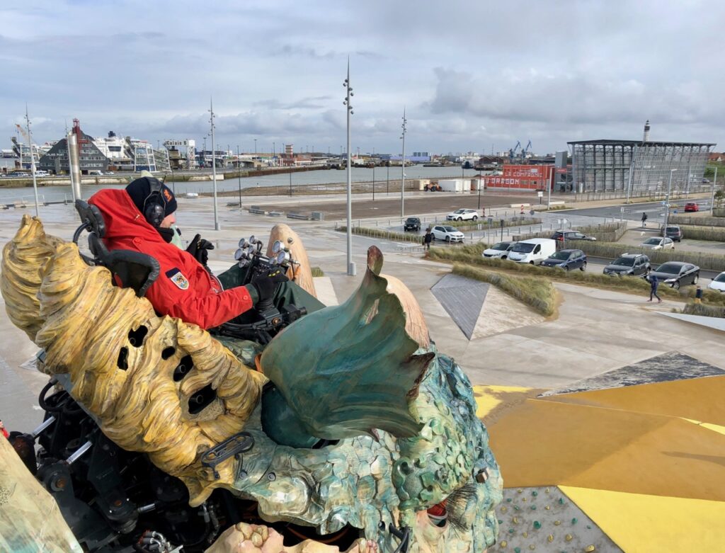 Ils sont en permanence six à piloter le Dragon de Calais. Ce jour-là, Rémy était installé sur la tête, poste le plus exposé, surtout les jours de pluie et de grand vent !