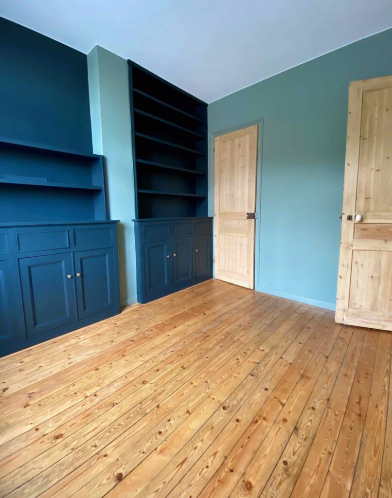 Comme d’habitude, travail très soigné et résultat au top ! Merci Adrien, le super (et sympa) peintre qui a fait le job. Côté parquet, rien à faire,à part un léger coup de cire pour redonner au pitchpin ancien tout son éclat.