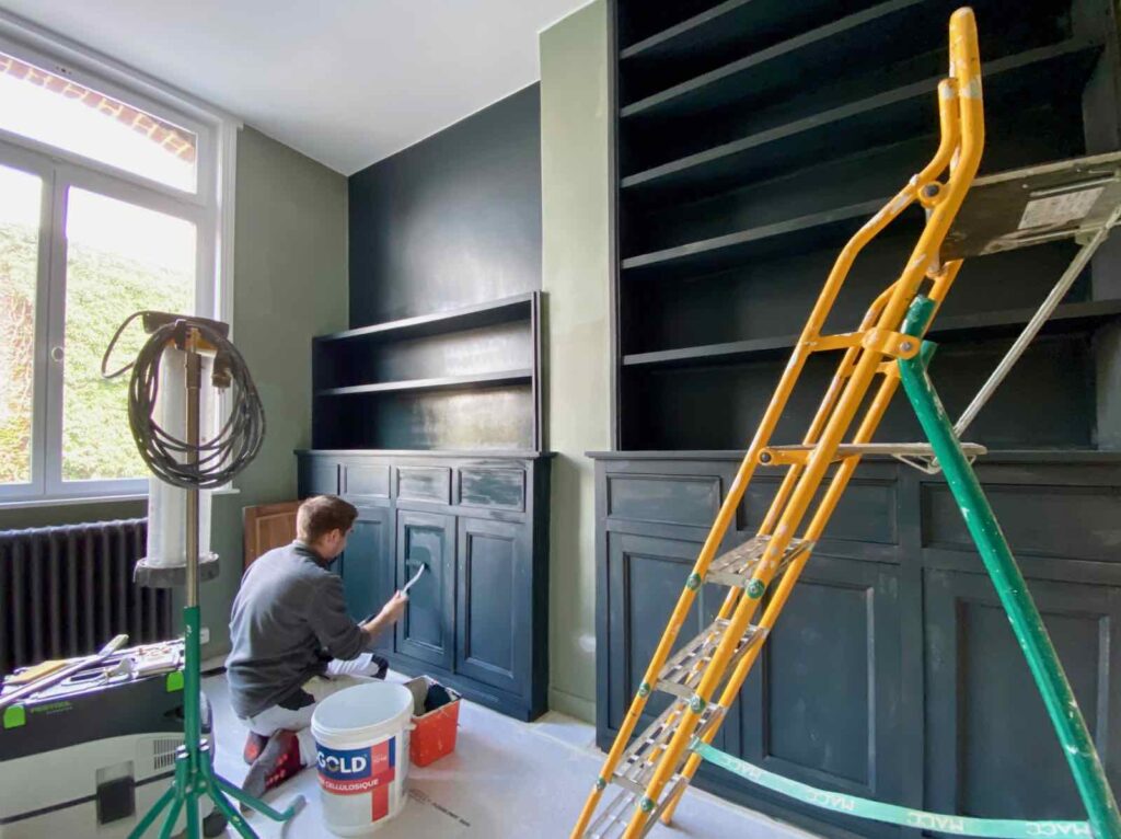 Bref, envie d’un grand coup de changement et de choix plus radicaux ! Après presqu’un an d’attente, l’entreprise Julien Duynslaeger, mon peintre préféré, est enfin arrivé à la maison.