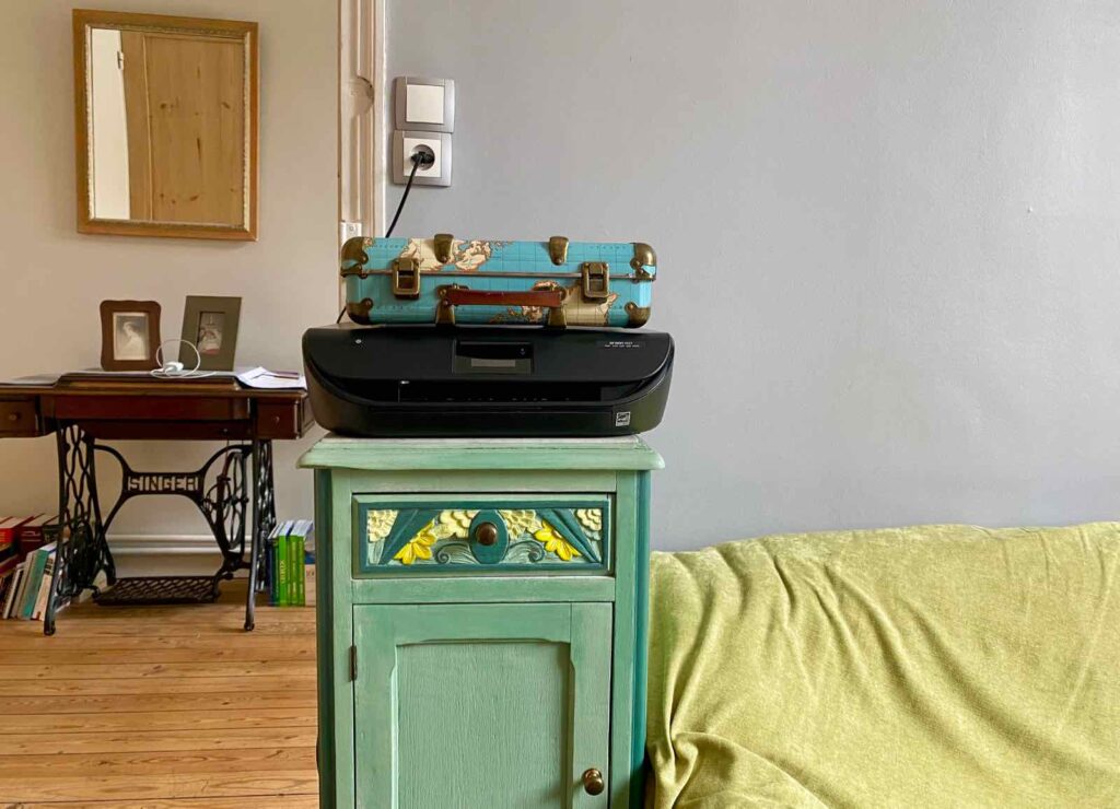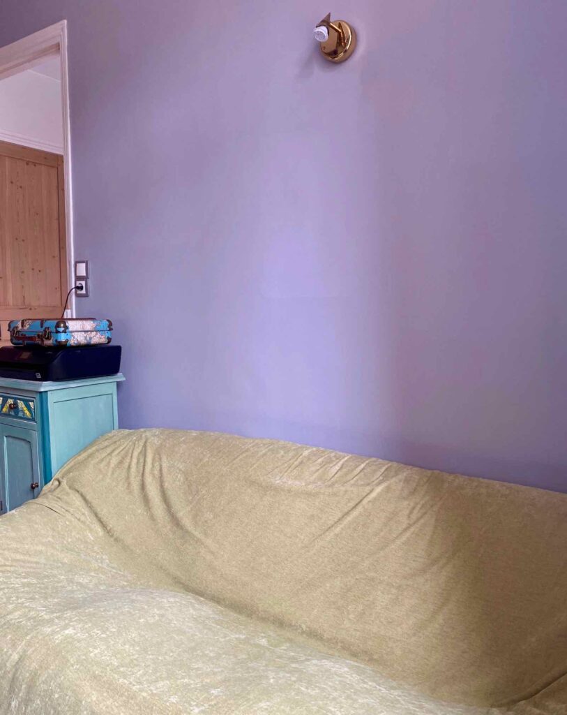 Et que dire de cette table de nuit peinturlurée dans un vert bizarre, servant de support à mon imprimante, à côté de mon ancien canapé Cinna, recouvert d’un plaid d’un autre vert ? Franchement, pas très déco tout cela ! Un ensemble de bric et de broc, composé de tout ce qui n’avait pas trouvé sa place ailleurs dans la maison.