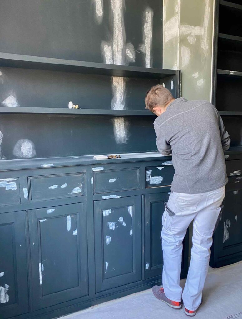 Pas trop de doutes concernant les coloris. Je savais depuis un moment que je souhaitais du vert de gris sur les murs de mon bureau et du noir sur la bibliothèque pour un côté très flamand. Restait juste à choisir les bons tons, le nuancier de Julien étant plutôt bien fourni.