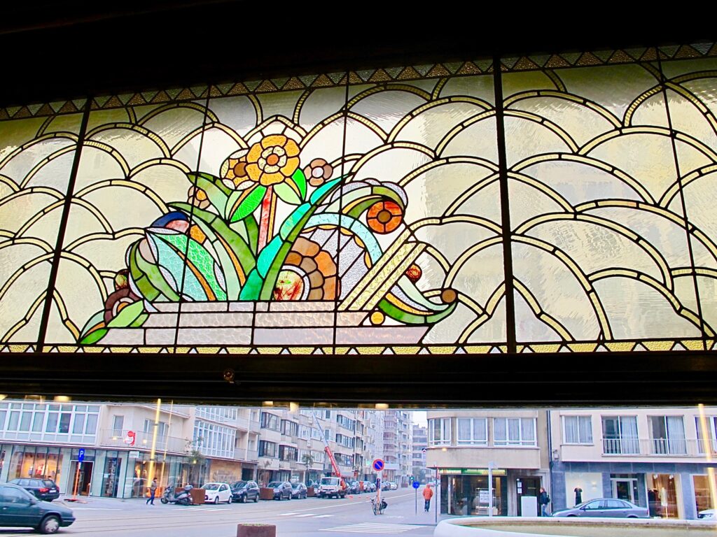 Encore un lieu où on ne vient pas pour faire un déjeuner gastronomique mais juste pour grignoter un morceau au cours d’une journée ostendaise. Vous l’avez peut-être deviné, si vous avez déjà parcouru ce blog, j’aime cet endroit pour son authentique côté Art déco. L’hôtel et la brasserie située au rez-de-chaussée ont miraculeusement échappé à la vague de démolitions forcenées qui ont sévi à Ostende dans les années 50 et 60.