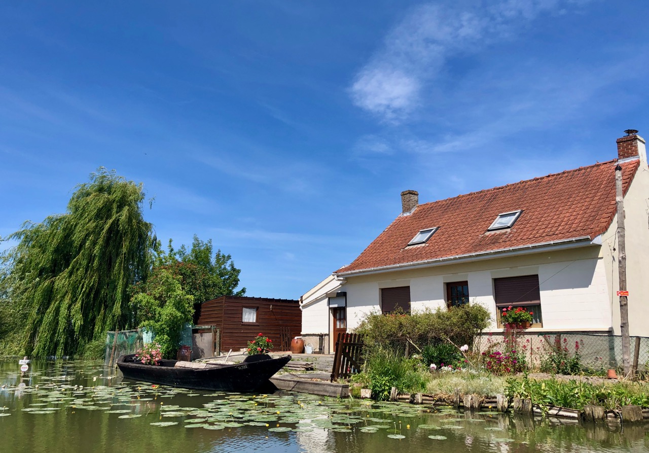 Marais-audomarois-Isnor-maison-et-barque-noire