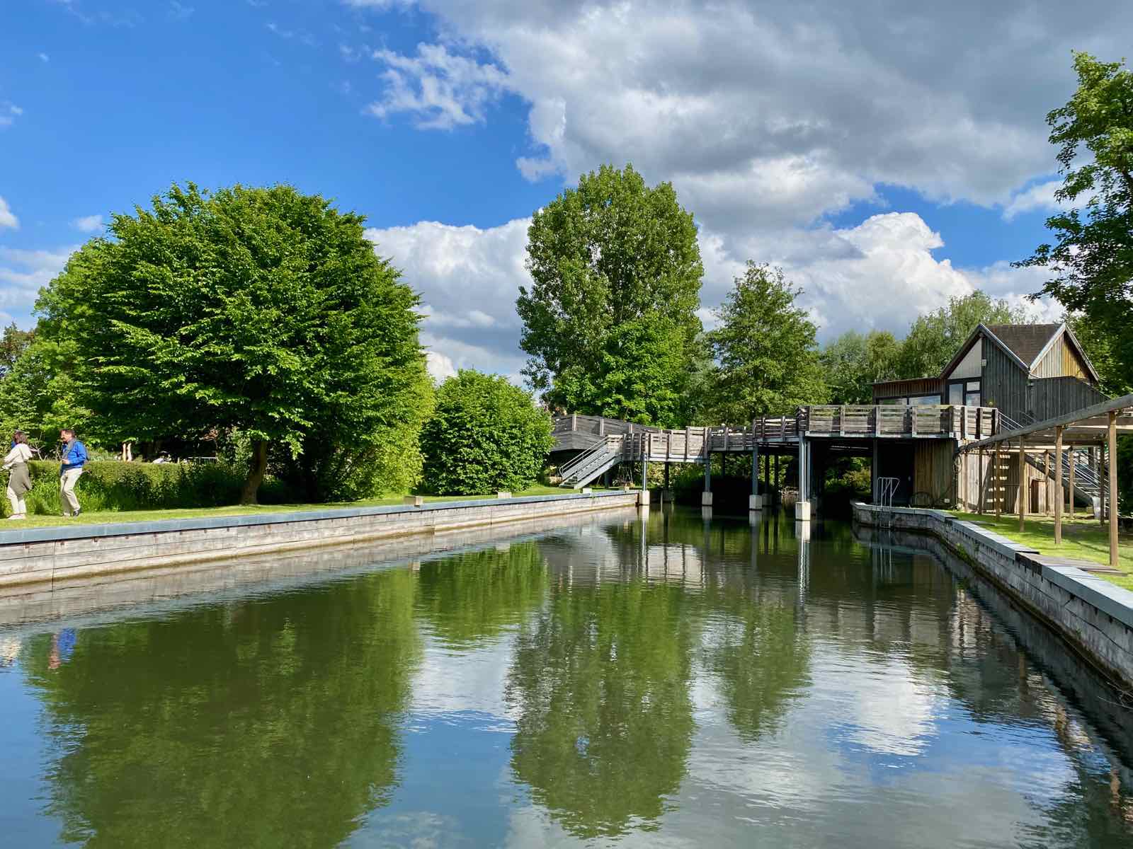 Amiens-hortillonnages-Festival-international-de-jardins Ile aux Fagots construction bois et bassin