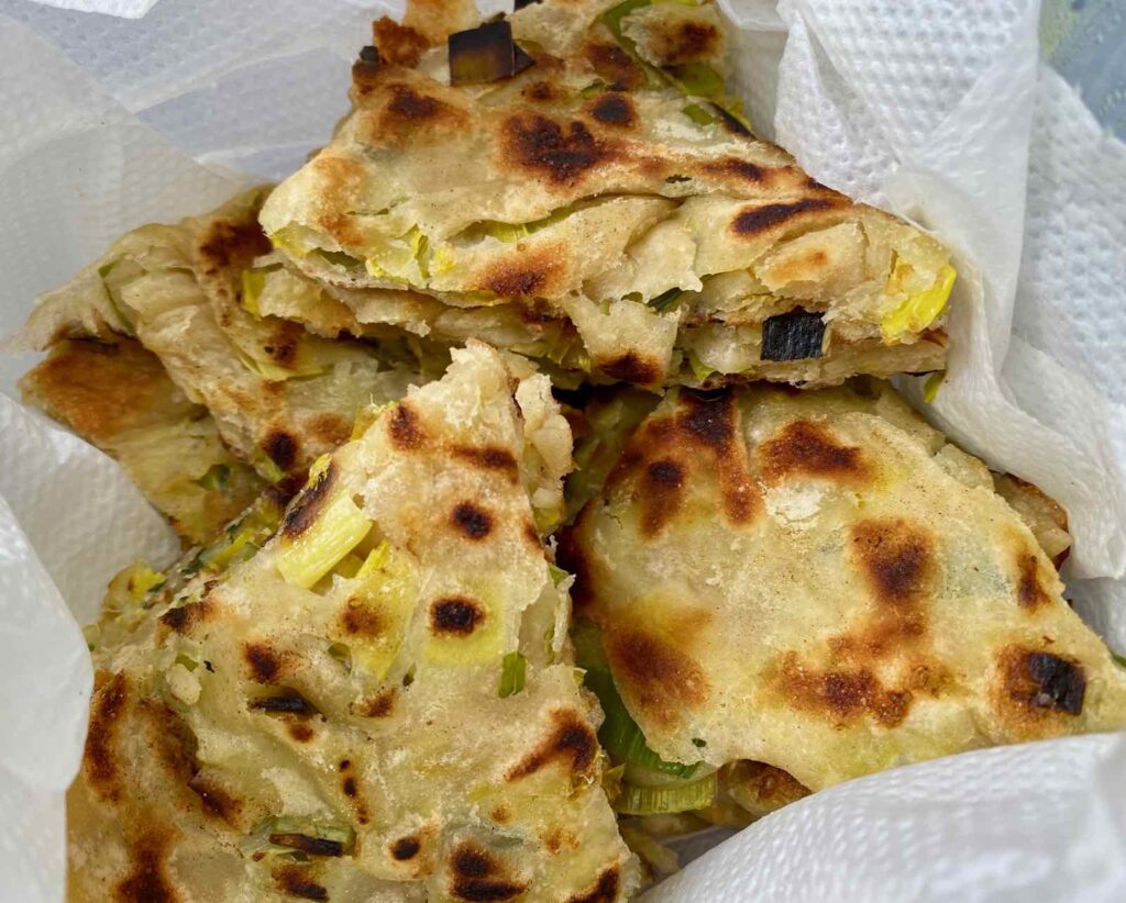 En entrée, des galettes au poireau, plat taïwanais, pas spécialement ayurvédique mais parfaitement équilibré.