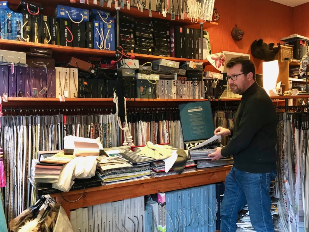 Olivier, le patron, est un tapissier d’exception, ancien Compagnon du devoir. Il a roulé sa bosse dans divers pays et villes (dont l’élégante Florence), avant de se poser dans la métropole lilloise. Même s’il peut se montrer un peu bourru, j’aime échanger avec cet homme de goût, qui sait conseiller ses clients.