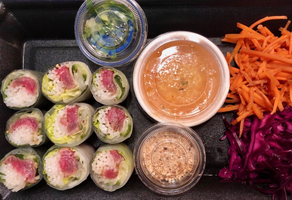 Pour les sushrolls, ces petites bouchées veggie ou à la viande, c’est au « mangeur » de finir le travail. C’est en effet lui qui ajoutera, juste avant dégustation, sauce, herbes ou poudre de riz, que Davonn met à part sur ses plateaux.