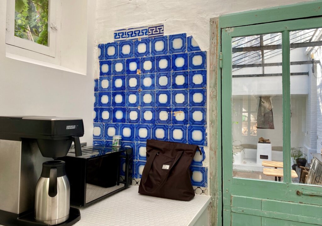 Dans la salle de petit déjeuner, les bols artisanaux, les mêmes qu’à La Grenouillère, attendent le café ou le thé du matin.