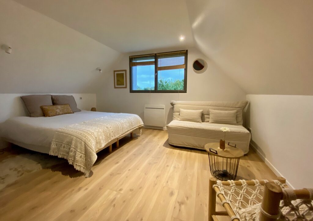 C’est ce que j’ai fait dans la chambre Hortensia, un cocon bien en phase avec son environnement naturel, idéal pour un week-end zen.