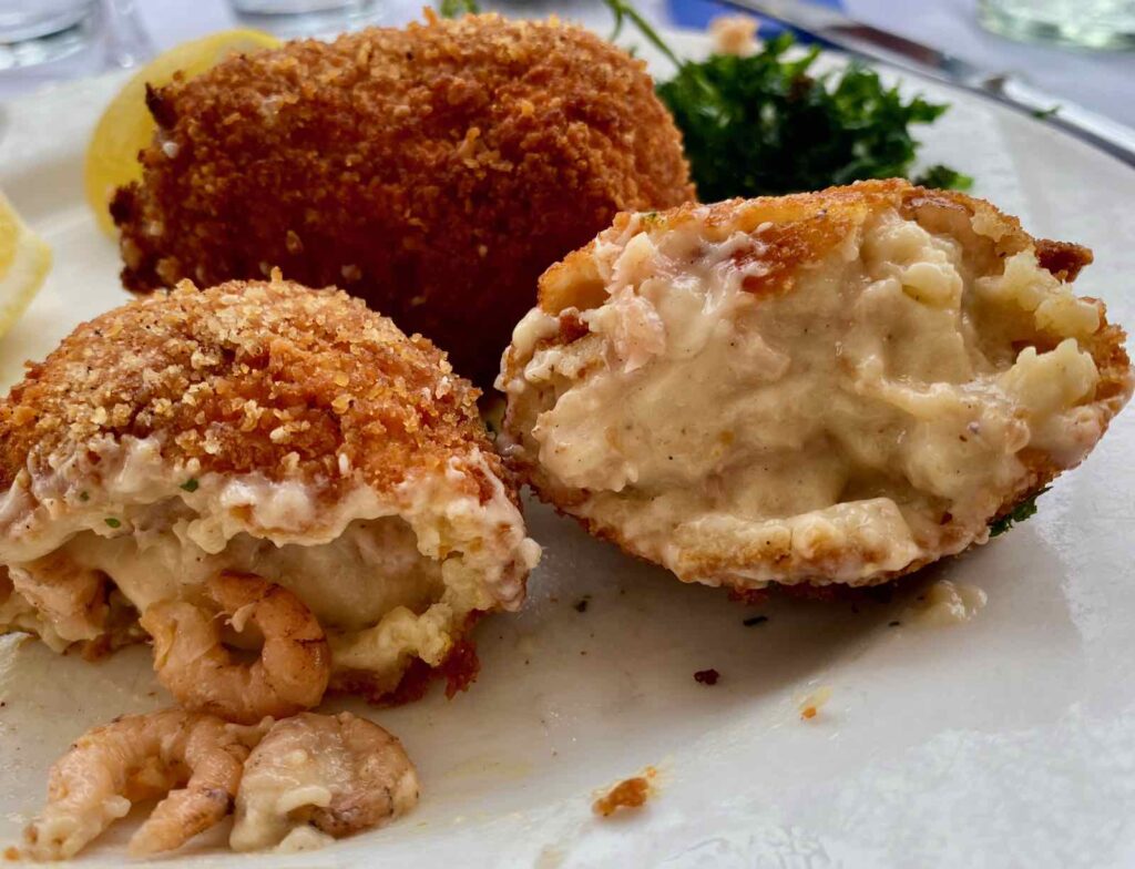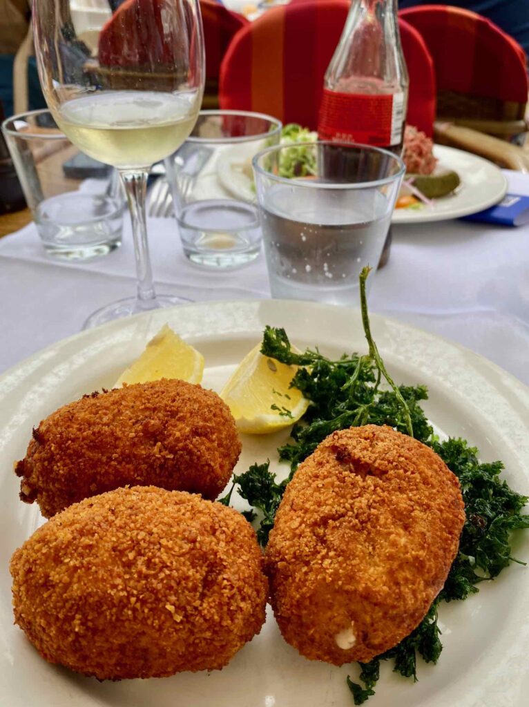 Au cours de ces deux repas, j’ai goûté aux fameuses croquettes de crevettes, mon « must » absolu à la côte belge, surtout dans le resto d’une famille de pêcheurs… Elles sont notamment servies en « single » (5,10 €), ce qui est bien pratique si on veut juste goûter à la chose…