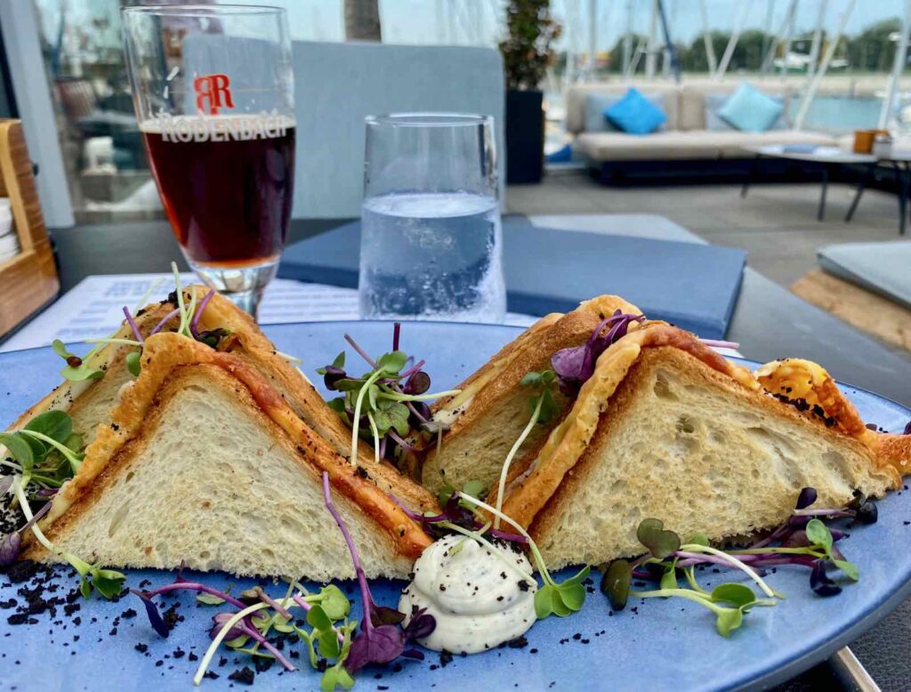 J’ai également testé le croque au jambon Serrano et au fromage (12 €), servi avec sa mayonnaise à la truffe. On est loin ici des produits de la mer, je vous l’accorde, mais cette mayo à la truffe me faisait trop envie…